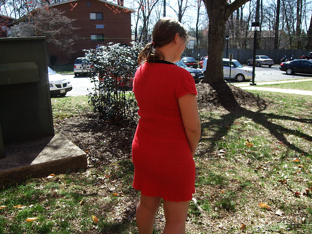 It was, for the most part, a pretty easy knit though. I mean, it’s mostly just around and around and around with some increases thrown in at the skirt. I’m almost crazy enough to knit another one for my Nerd Wars dissertation. I’ve been wanting to do a dissertation for the next round, and it would almost have to be a lace weight dress because there are few things that would actually take three months to knit. I’ll have to look through the yarn stash and see what I have in enough quantity–the sweater that the yarn for this dress came from was enormous with a gigantic cowl neck. I guess I could always do stripes.