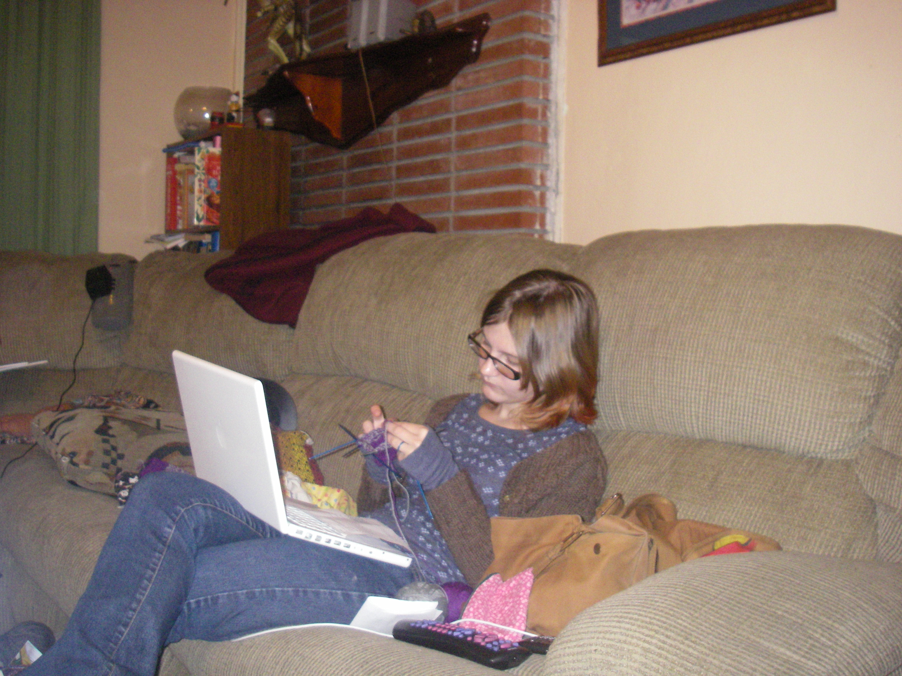 That’s my living room couch (photo taken this past winter break, I believe). I do not prefer to knit there. But it’s the best place in the house, since that’s where the TV is (and I need to have something in the background when I knit–I have trouble just knitting since much of it is mindless).