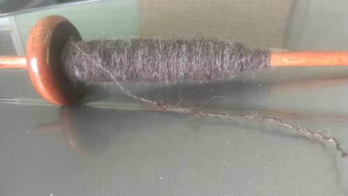 I am currently spinning this up into a chunky yarn on my big ass spindle.